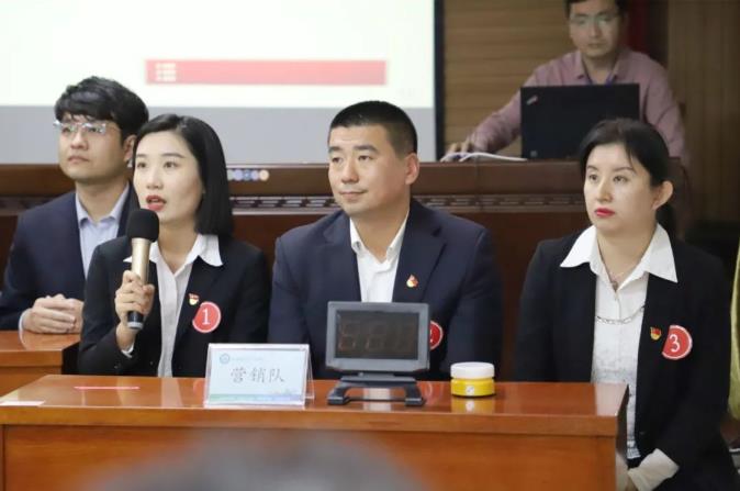 “蓬勃飛躍,勇爭第一!”“紅色物業(yè),為民服務!”“不忘初心,砥礪前行!”“開拓市場,有我最強!”在一聲聲洪亮的口號聲中,比賽拉開了序幕。此次黨史知識競賽內(nèi)容新穎、形式創(chuàng)新,競賽全程采取隨機抽題的方式,分別設置了必答題、搶答題、風險題三個競賽環(huán)節(jié)。在第一關的必答題環(huán)節(jié),每隊輪流派出三名選手作答,大家應答如流、自信滿滿,黨史知識儲備可見一斑,比賽氛圍熱烈。