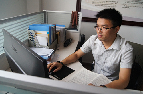 密密麻麻的桌面學習文件,擺放的整整齊齊的文件,是李加強工作的日常。